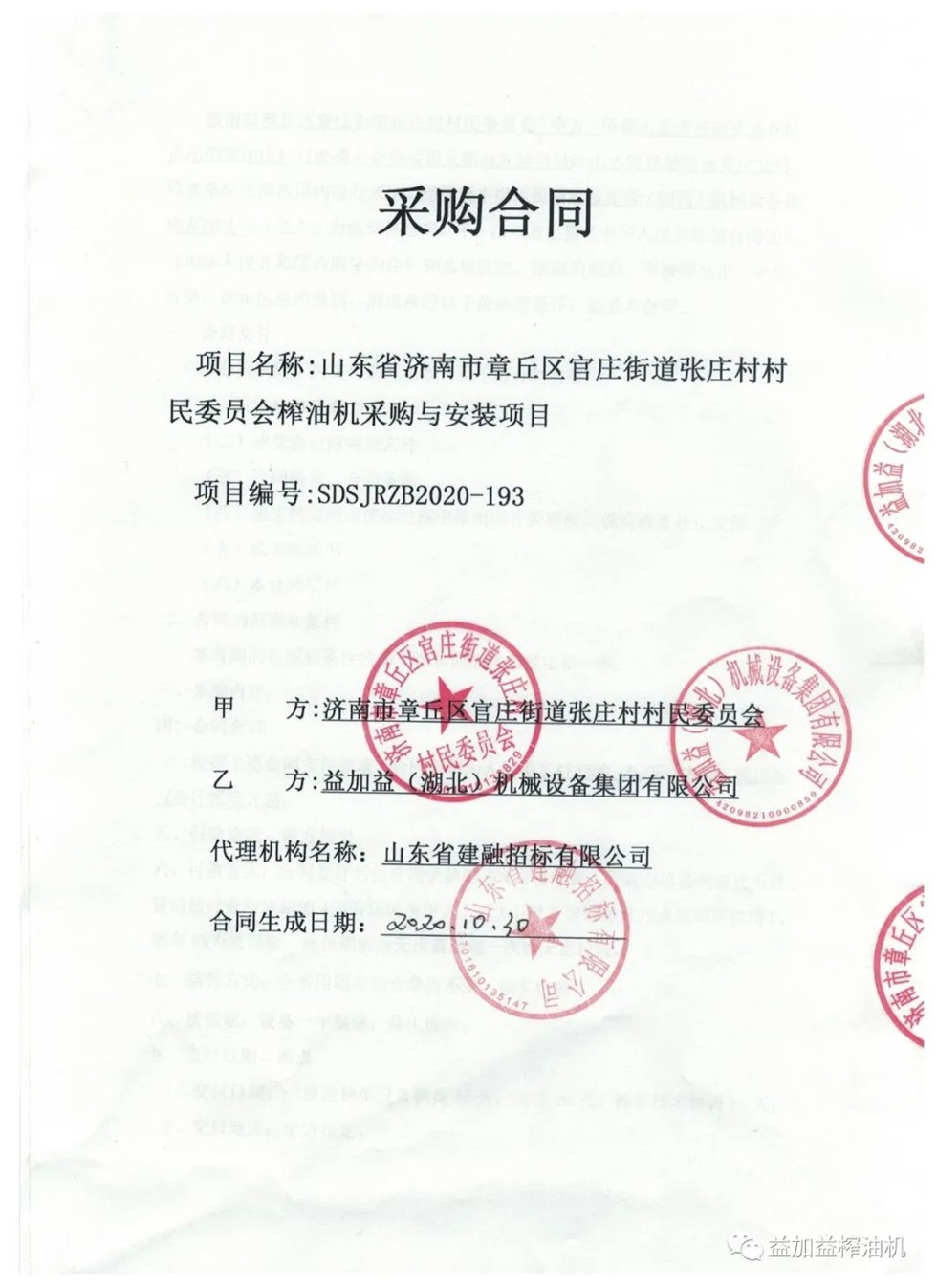 最近、益加益集團在山東省濟南市章丘區(qū)榨油機采購與安裝招標(biāo)項目的競標(biāo)中,憑借過硬的產(chǎn)品質(zhì)量,優(yōu)秀的新技術(shù),卓越的新工藝,新材料的應(yīng)用以及良好的企業(yè)信譽,以絕對優(yōu)勢順利中標(biāo)。